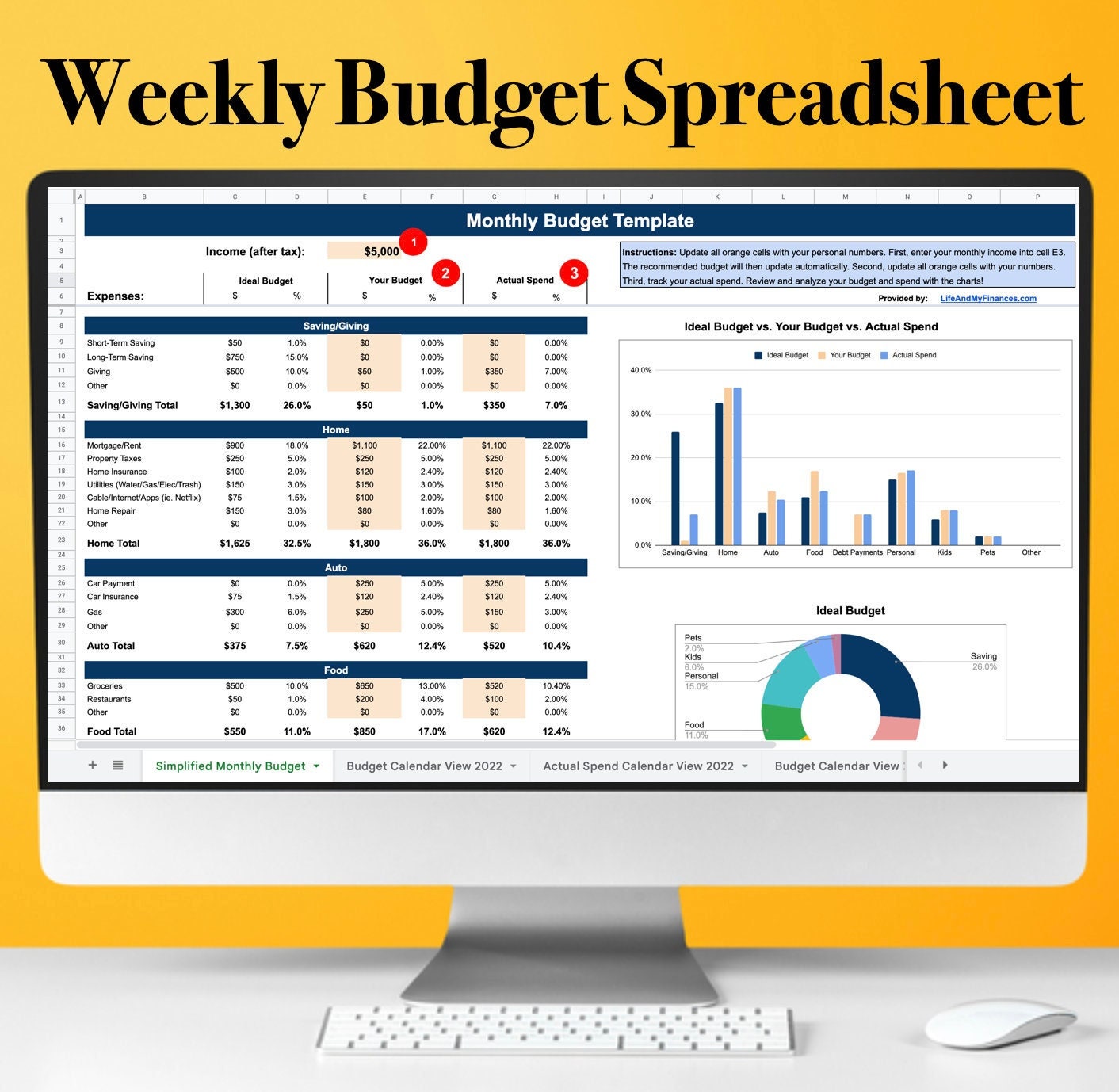 Weekly Budget Template Spreadsheet Tracker Calendar Budget Worksheet Sheet Calculator For Excel Google Sheets And Numbers Etsy New Zealand